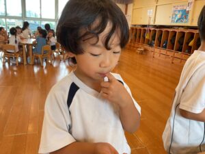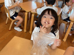 指先の力で取るのが少し大変そうでしたが、子ども達は「たくさん食べたいから❕」と笑顔で最後まで挑戦してくれました☺️