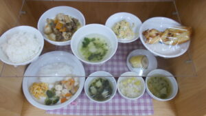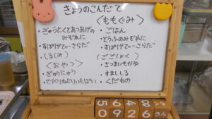 献立に変更があります。おやつがねじり芋パイに変わっています。もも組の午後食がさつま芋粥、すまし汁、果物に変わっています。