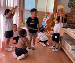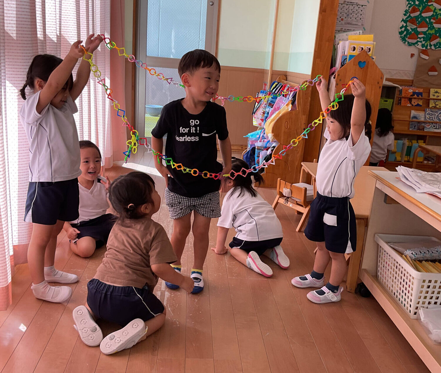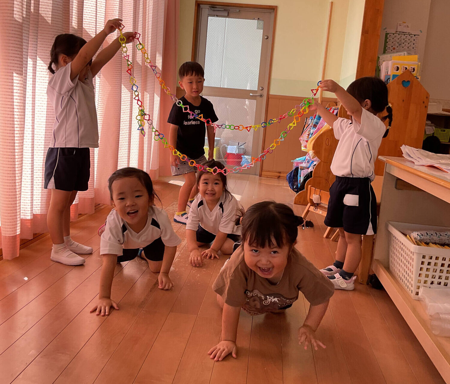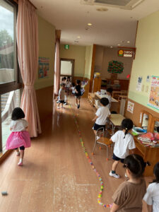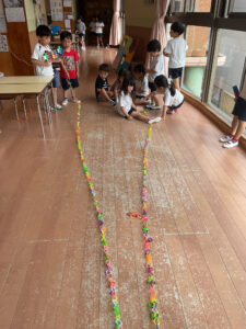 みんなで協力して繋げたジャンボチェーンは、ばらぐみさんのお部屋の前まで長〜くなりました🌟