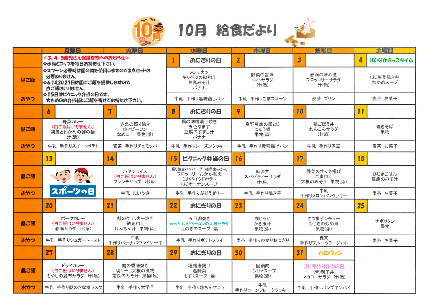 10月給食献立