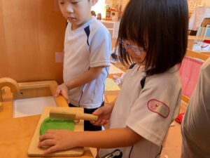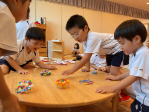 「コマを作って戦わせない?」と提案してみると、「良いね!」とコマ作りが始まりました!