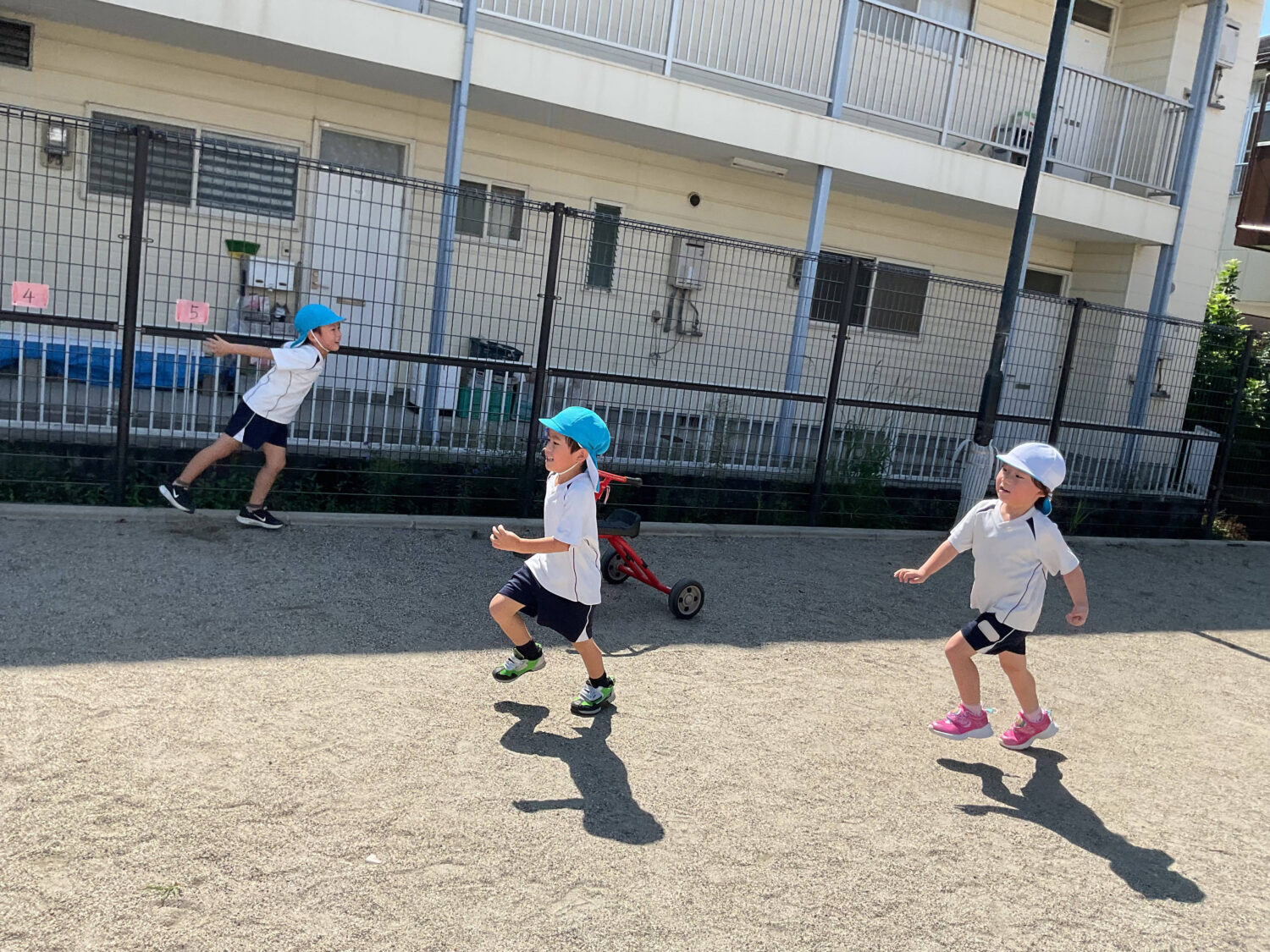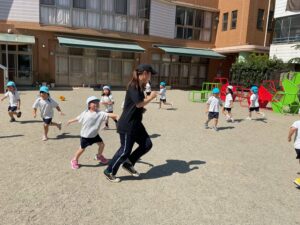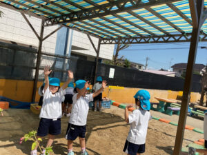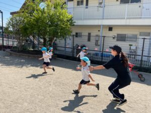沢山遊んだ水遊びも終了となり、久しぶりに戸外遊びを楽しんだ子どもたちです♪