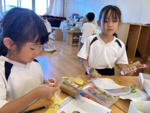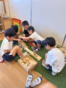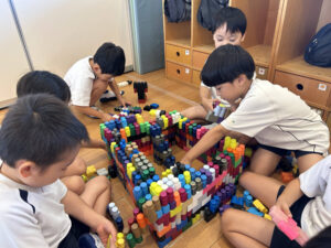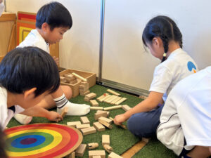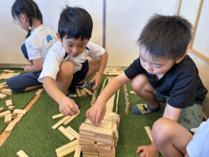 「こうしてみよう」「こっちがいいかもよ」とお互いに会話をしながら、製作や遊びに夢中になる姿が増えてきました!