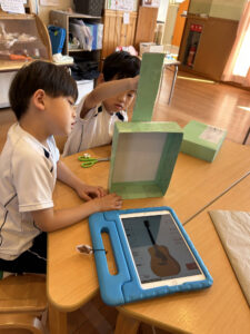 輪ゴムで伸ばしたらいいよね?と色々考えながら作っていたね👍