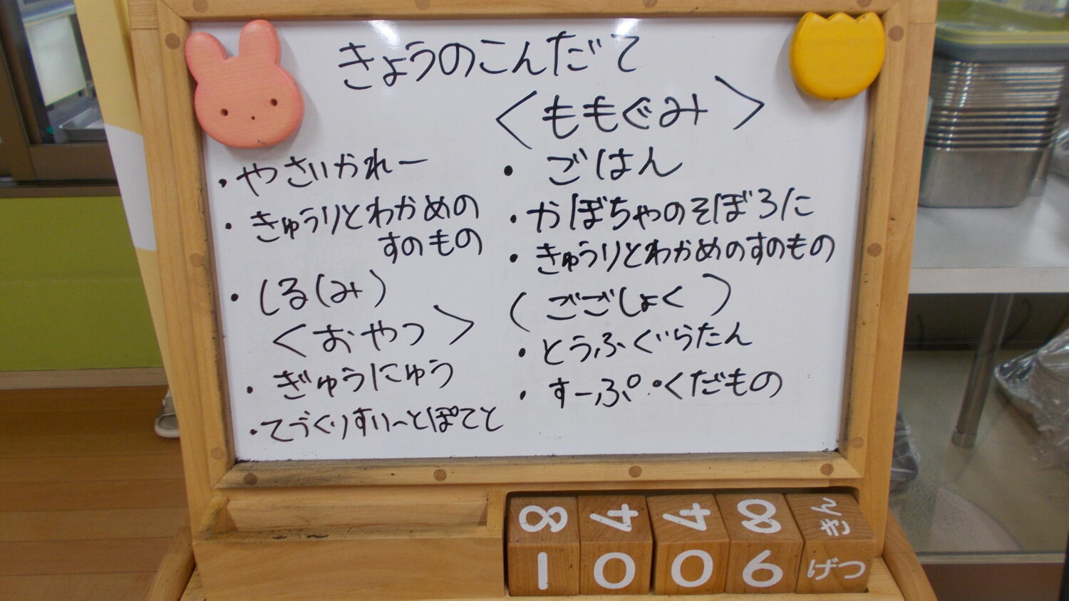 献立に変更があります。もも組の午後食が豆腐グラタン、スープに変わっています。