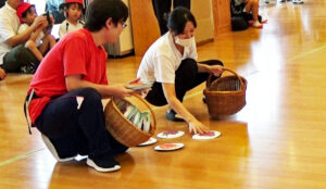 鬼になった子がもう1人を追いかけるのですが、逃げる子が2人ずつ並んで座っている子の横に座ったら、その反対側の子が今度は逃げる役に変わるというゲームです。