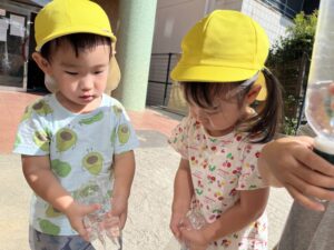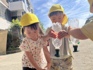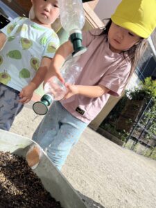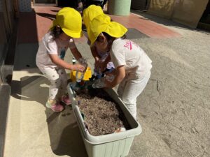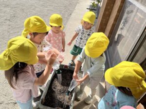 期待を込めて、いつもよりいっぱいお水をかけてあげていた子ども達です!