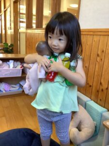 お友達や先生、ぬいぐるみなど“誰か”と関わる経験を通して、優しさや共感の気持ちを少しずつ学んでいるようです。