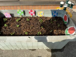 みんなで植えた小松菜は先週の金曜日よりもさらに大きくなっていました!