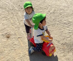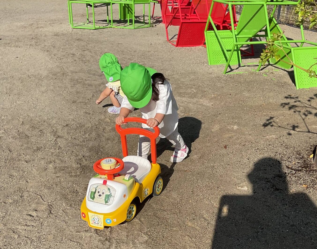 「のせてあげるね」とお友だちを乗せて優しく押してあげたりと、自然なやりとりの中で“思いやりの芽”が育っています🚗✨