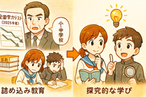 この背景には、「詰め込み教育」から「探究的な学び(自分で考え、発見する学び)」へと教育のあり方が変わってきていることがあると考えられています。