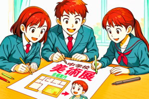 今回のテスト問題の例では、「中学校の美術展に地元の小学生を案内するチラシに、会場の図解を追加しました。その目的は何ですか?」とチラシを作る人の意図を想像して答えるといった、“自分で考えて答えを導く力”が求められたようです。