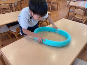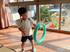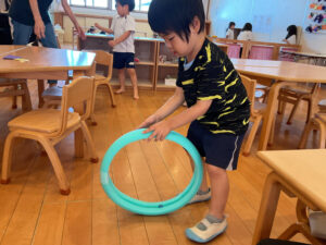 「見てみて (フープを)急いで回すとビー玉が消えるんだよ‼️」遠心力の発見✨