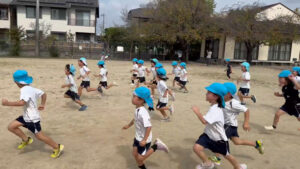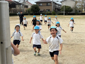 久しぶりの広い公園を満喫しようと、全員でかけっこ!