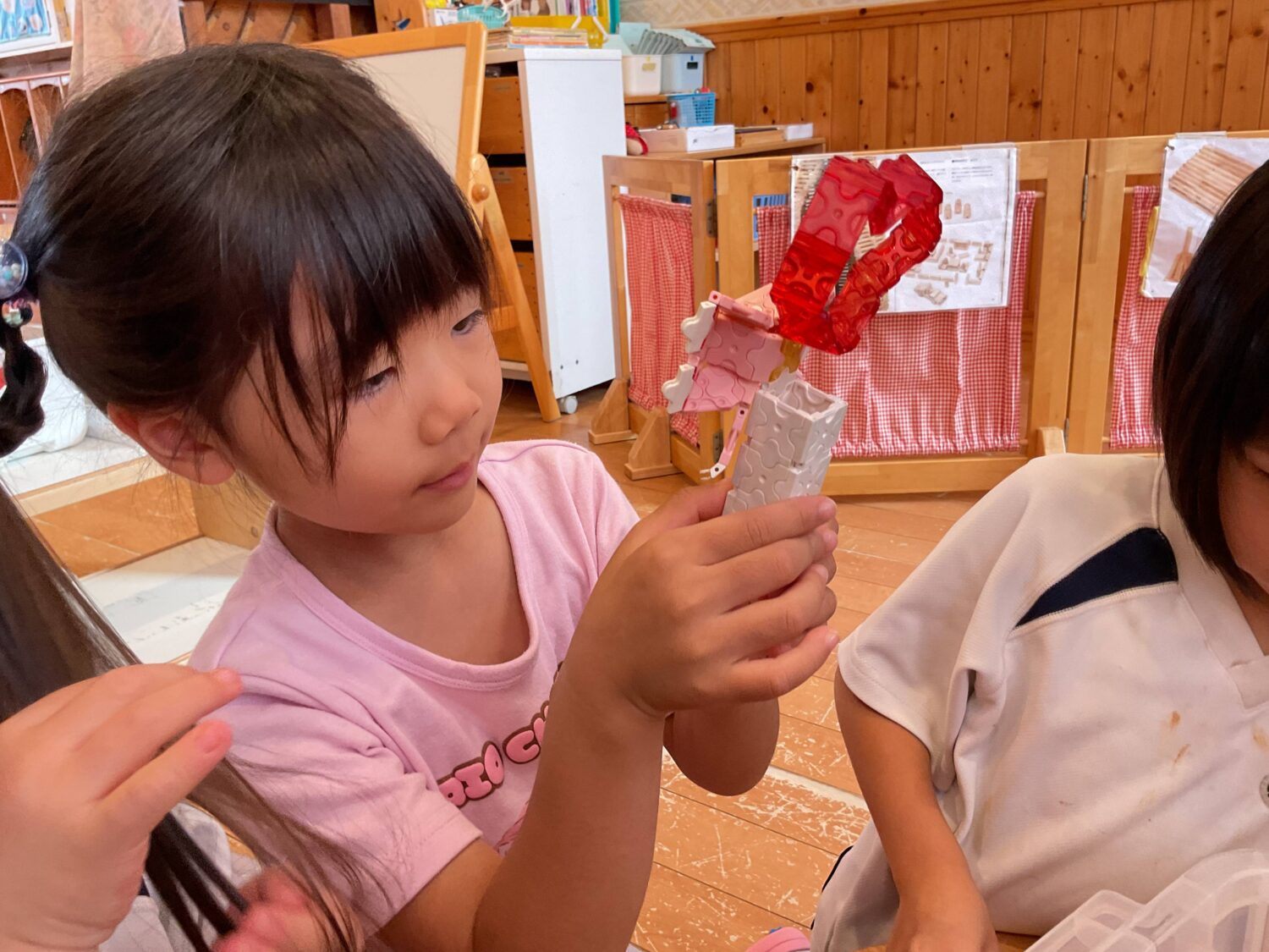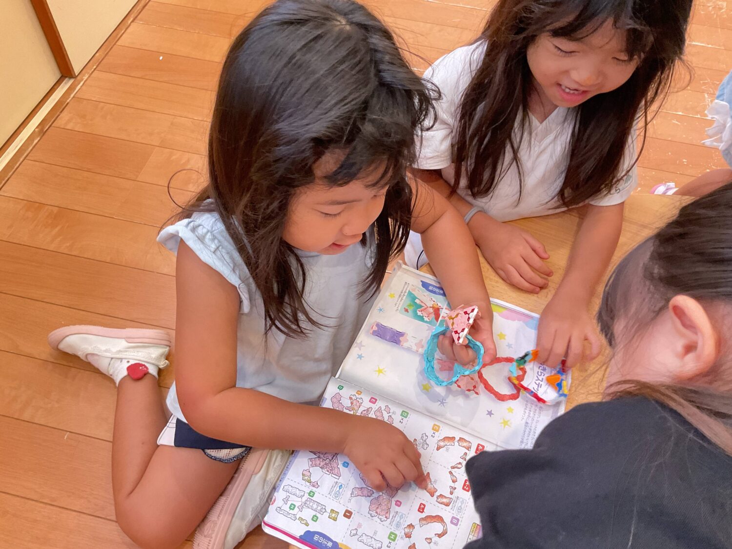 説明書を見ながら1つ1つ作り上げるお友達や…