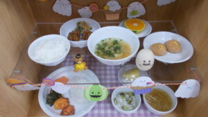 メロンパンクッキーにはミックス粉、マーガリン、卵、グラニュー糖を使用しています。マーガリン、ミックス粉、卵を混ぜて生地を作り、それを丸めてグラニュー糖をまぶし切り込みを入れて焼いています。見た目ミニメロンパンのようで可愛らしく、子どもたちも喜んでいました。