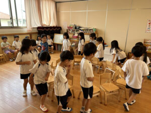 「椅子取りゲームやりたーい!」と子どもたちから提案があり、始まりました😆