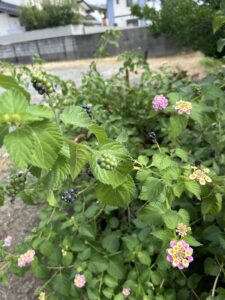 「ランタナ」というお花で、変わった形の花びらが特徴的ですね!