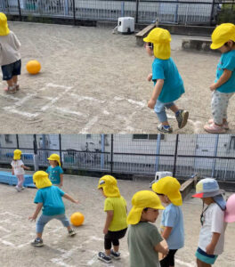 さて、外遊びには絶好の1日で、園庭遊びも盛り上がっています。