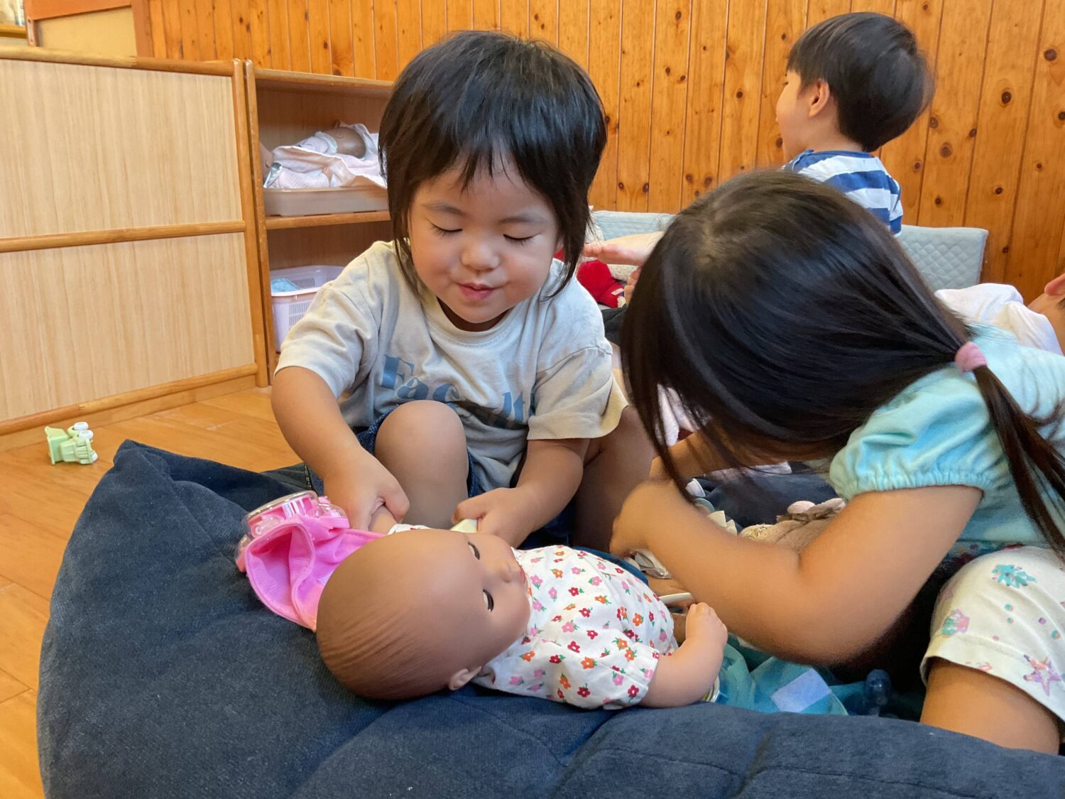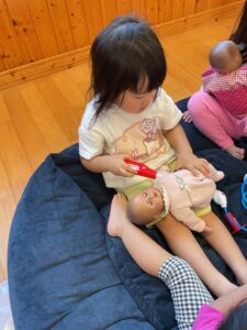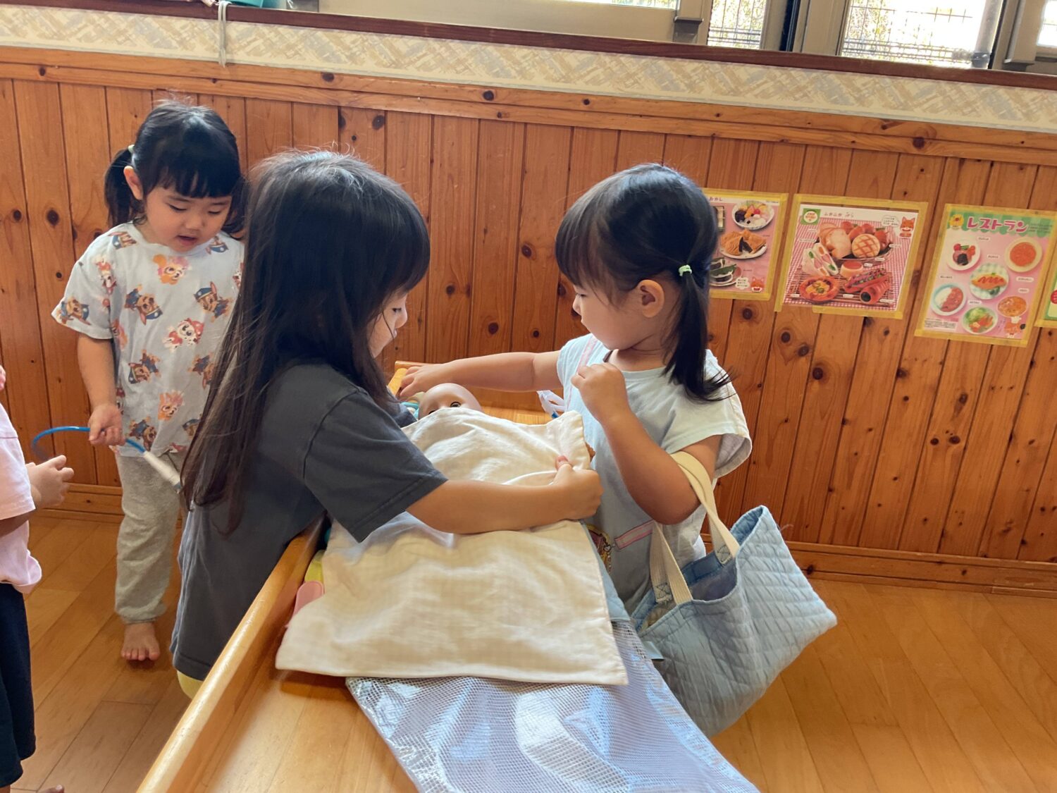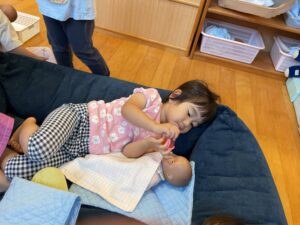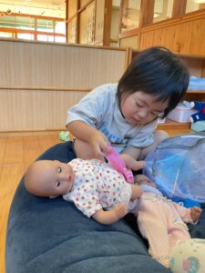 お人形あそびを通して、子どもたちは“誰かを思う気持ち”を遊びの中で体験しています。