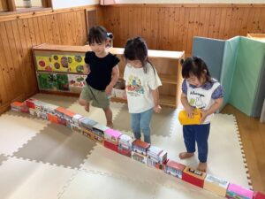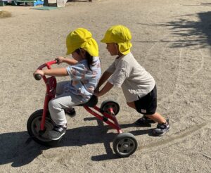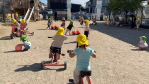 うまく漕げない子にも、後ろから押してくれたり、お友だちと協力する姿も多く見られるようになりました!