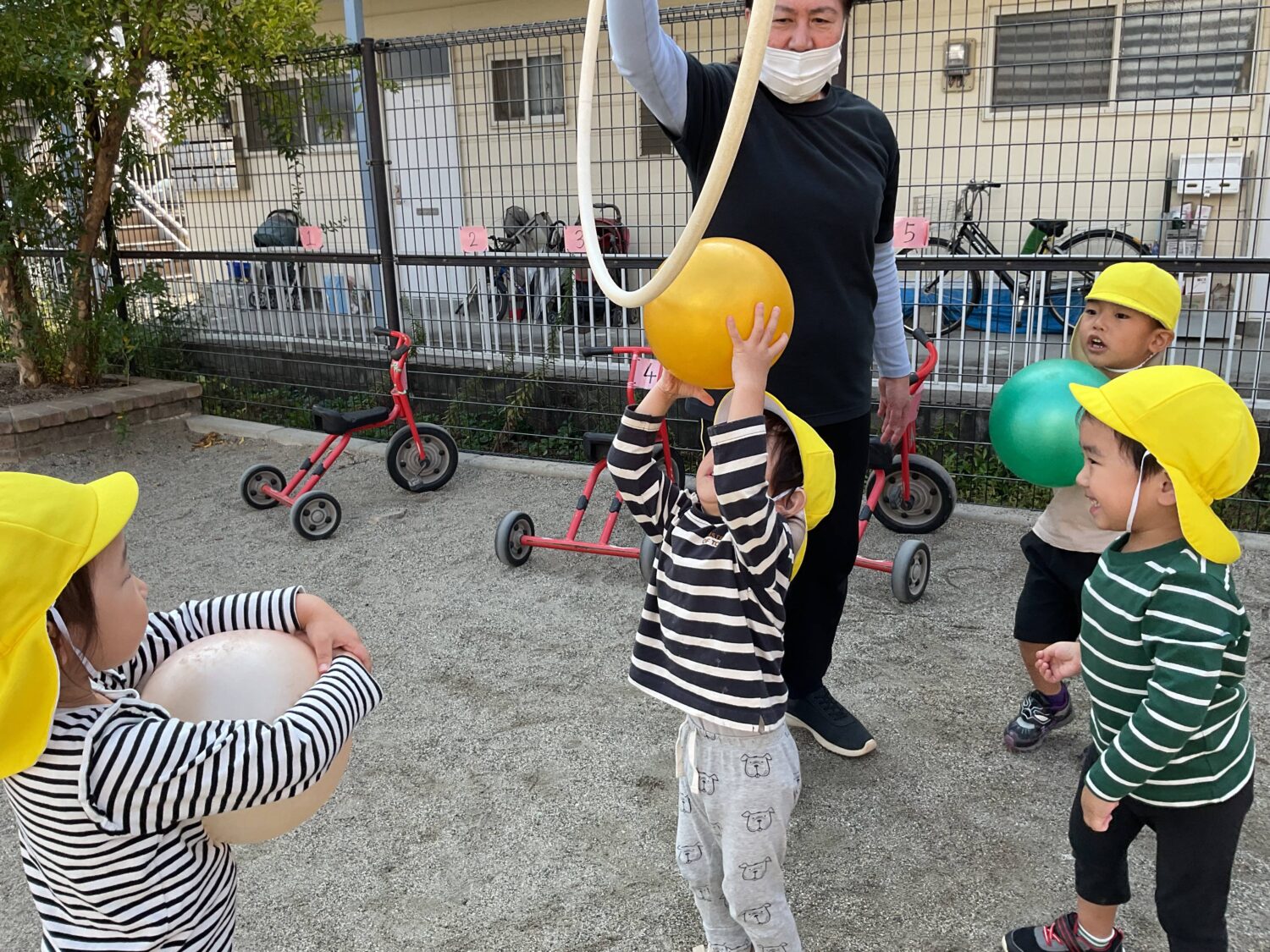 ボールを持ったお友だちも思わず近づいてきて仲間に加わりました!