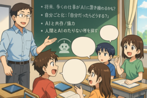 授業では「将来、今の仕事の多くがAIに置き換わるかもしれない」という前提で、将来について自分ごととして考える課題に取り組みます。