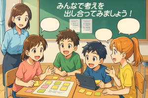 子どもたちからは「AIと共存する道を選ぶ」「人間とAIの足りない所を探す」「協力が大切」などの様々な意見が出たそうです。