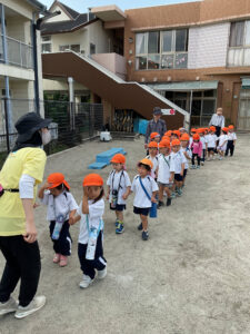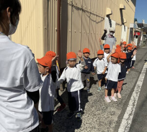 お友達と手を繋いで隣の出仲間公園へ出発‼︎