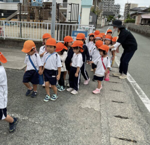 「お友達と手を繋ぐ」「道路に飛び出さない」「先生の話を聞く」「笛が鳴ったら車が来てる合図」🚦🚗