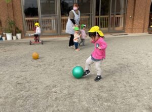カラフルなボールを追いかけたり、ポーンと蹴ったり…
