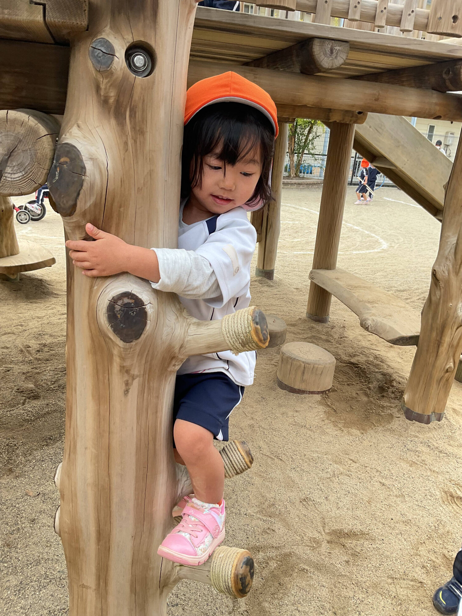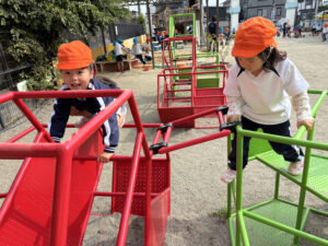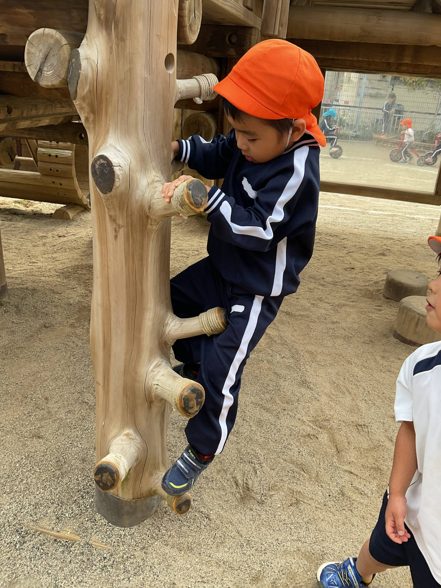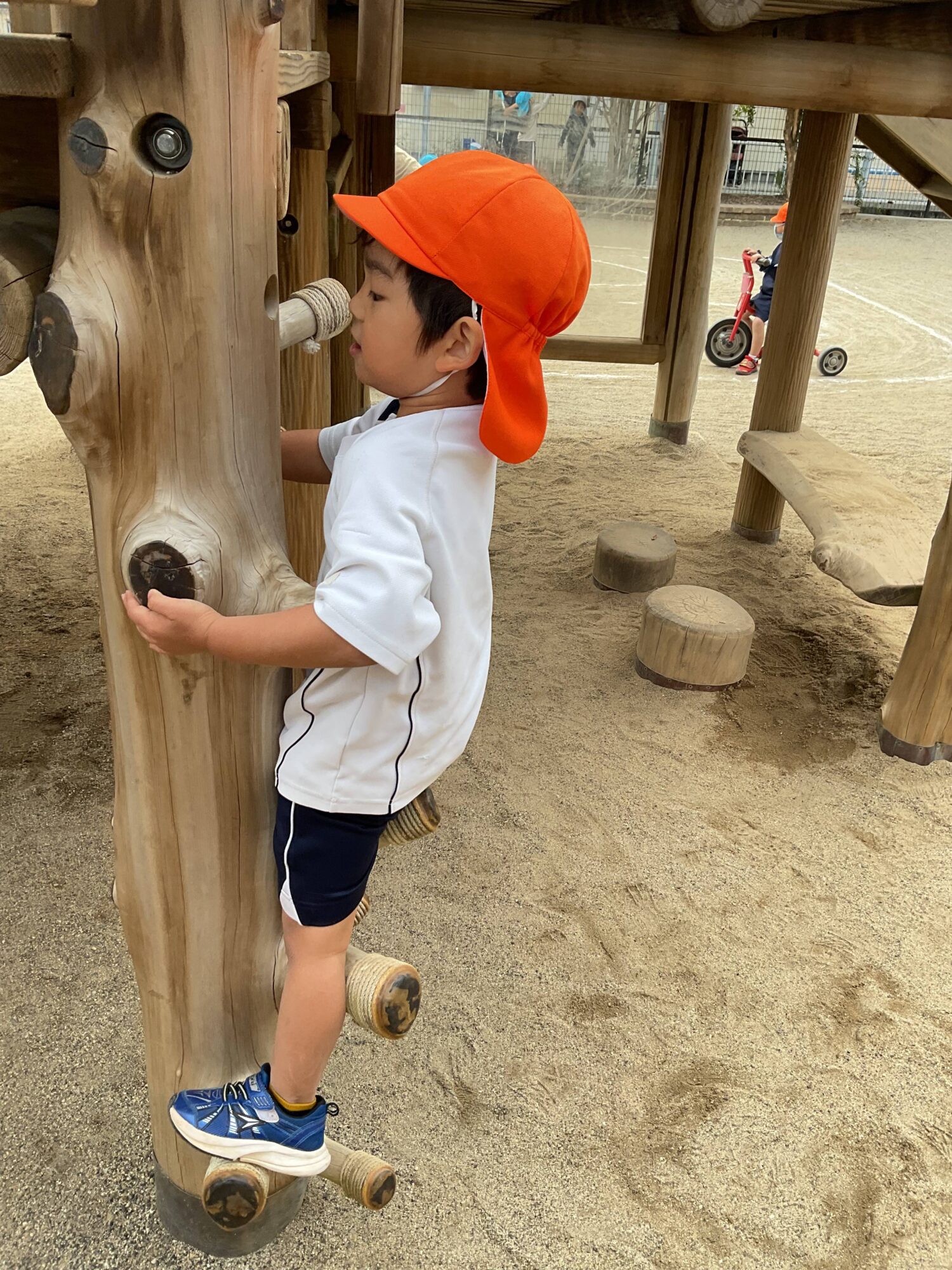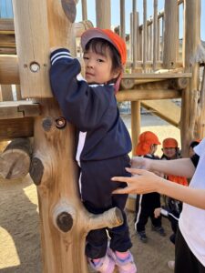 滑り台横の木登りに挑戦しました!