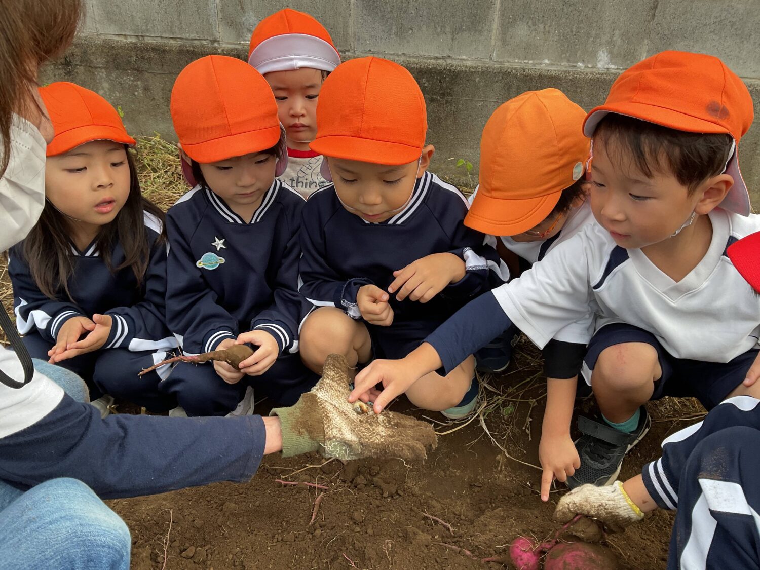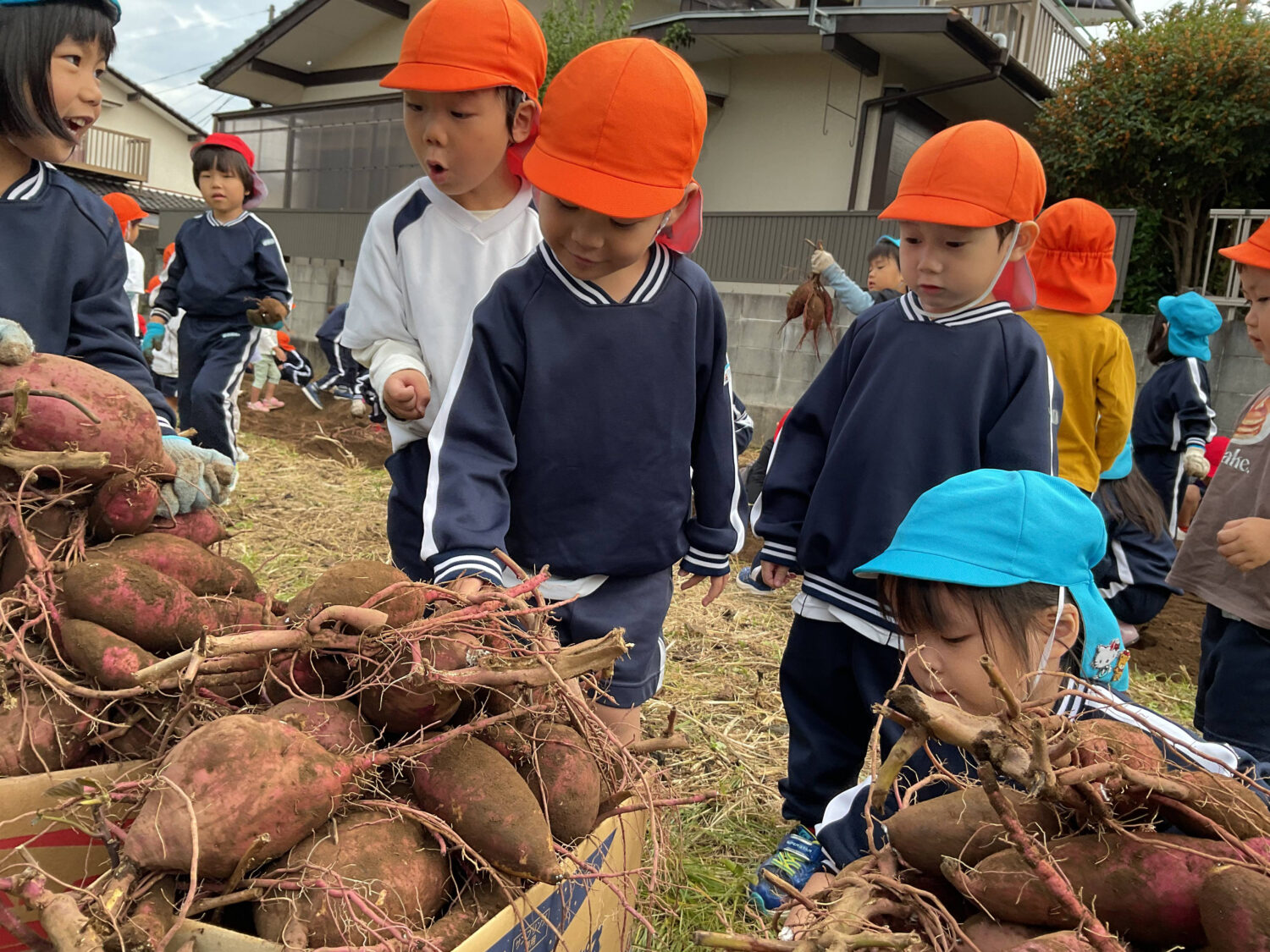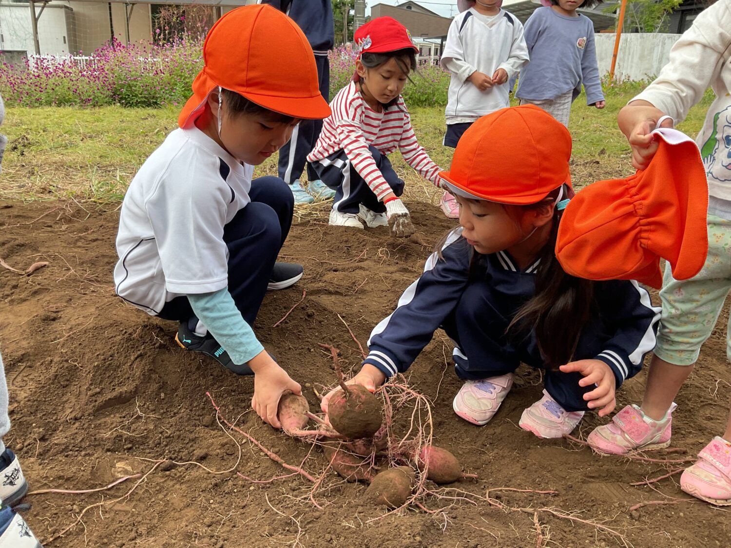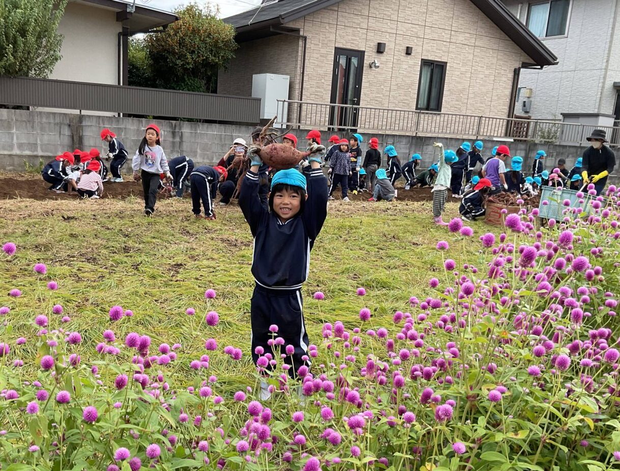 水曜日は、ゆり組とばら組さんの芋掘りの様子を見学に行きました🍠