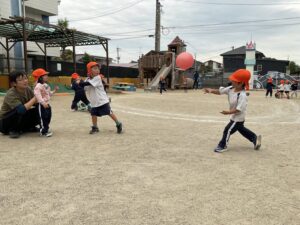 先日盛り上がったワールドシリーズが、出仲間こども園の園庭でも繰り広げられていました!
