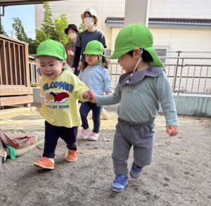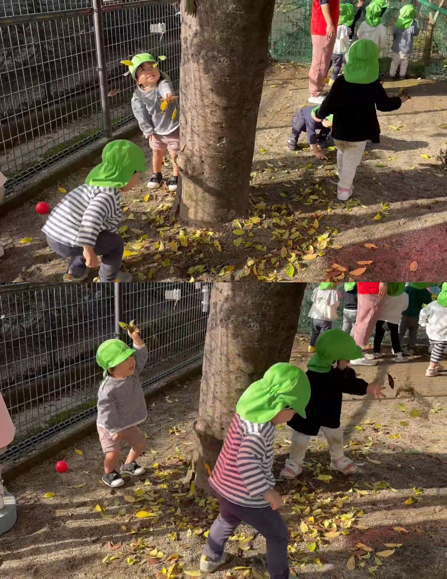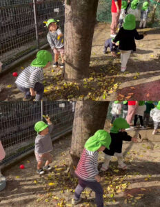 自然の風物に触れたり、落ち葉遊びをしたりなど…この季節ならではの遊びを楽しめるようになりました。