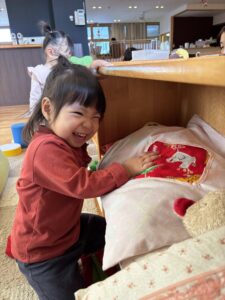 さて、ここからは久しぶりに室内での子ども達のユニークな遊びの様子をご覧ください。