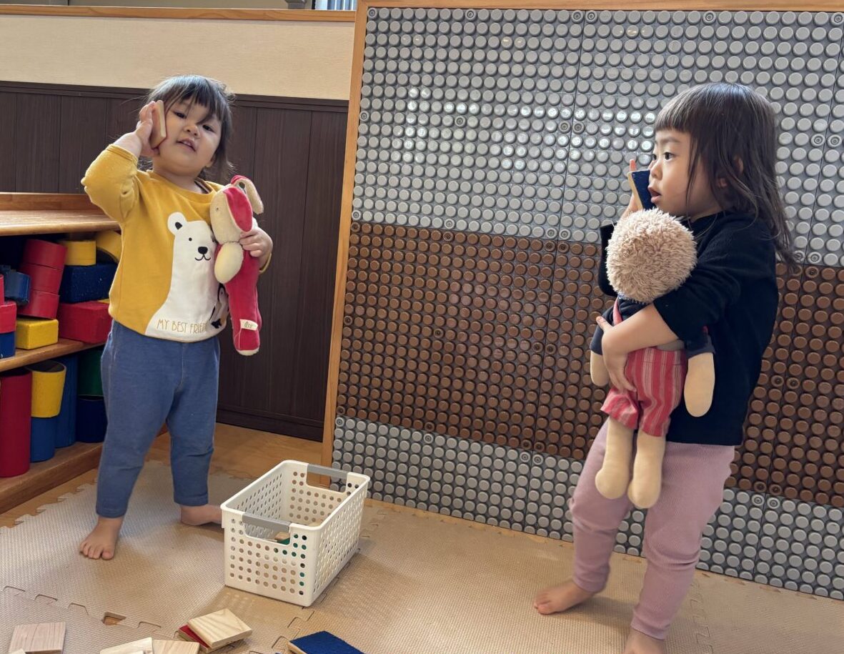 「もしも~し📲」電話にお人形のお世話と大忙しです😅
