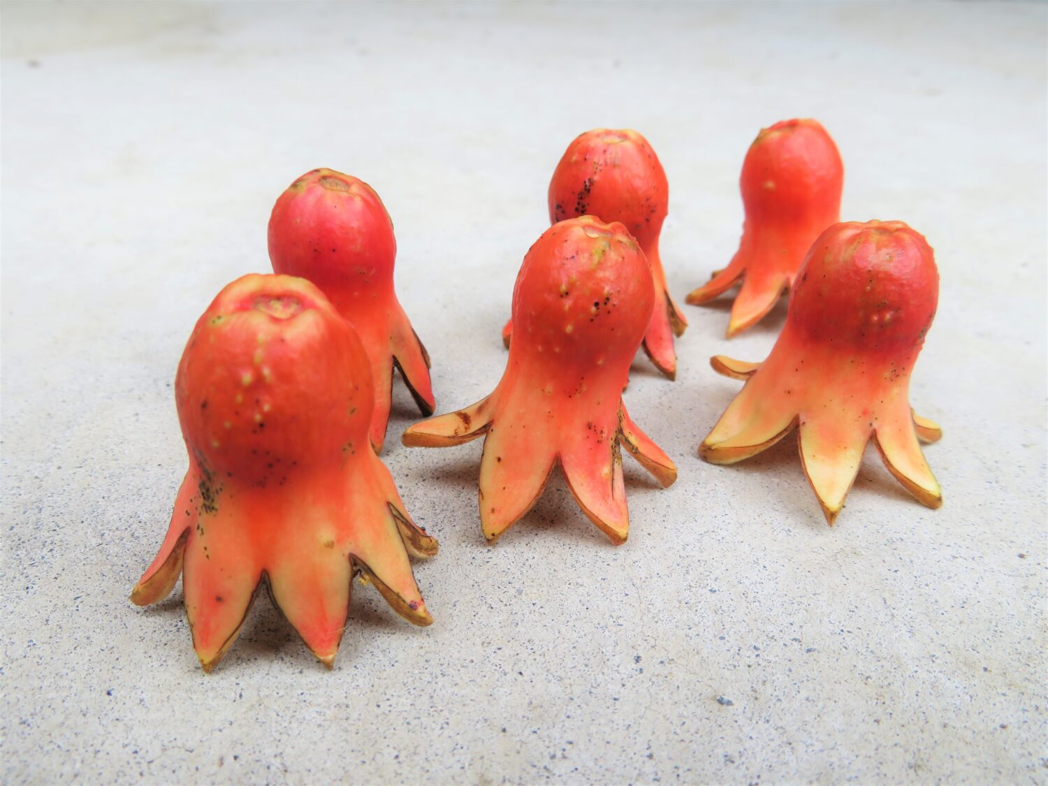 園庭に咲くざくろの落花のことで、この時期にはたくさん落ちています。