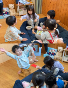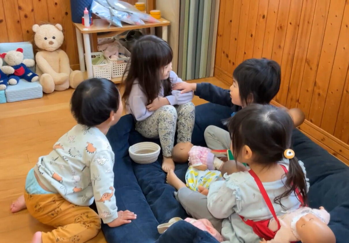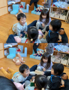2歳児ならではの世界観の広がりと、友だちと一緒に楽しむ喜びがあふれるひとときでした。