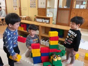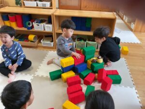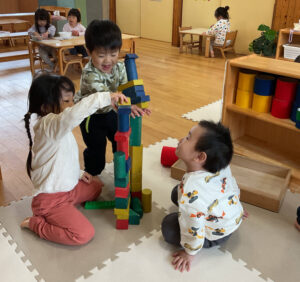 また、友だちと協力して遊ぶ過程では、「どこに置こうか」「もう一回やろう」と、お互いの意見を尊重しながら協働する力が育ちます☝🏻👩🏻✨