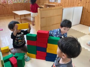 でも失敗を繰り返す中で、土台と積み上げるブロックの大きさや形状を工夫したりといろんな物理的・空間的な認識を育むことにつながります。
