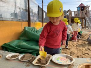 一人でじっくり砂を詰めたり、お友だちと見せ合ったりしながら、それぞれの想像の世界を楽しんでいます。