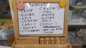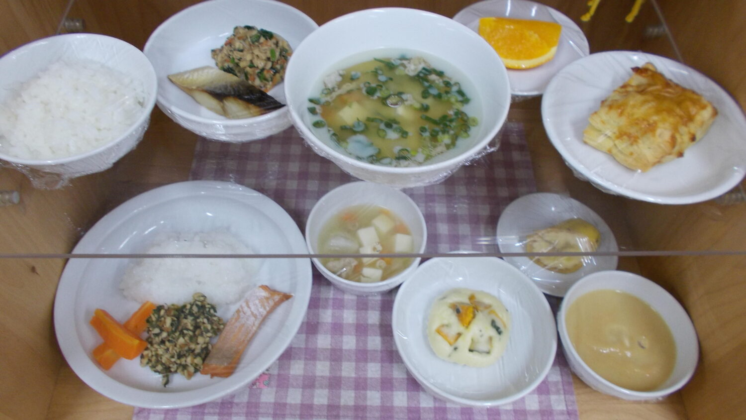 献立に変更があります。もも組の午後食が南瓜とほうれん草の蒸しパンに変わっています。