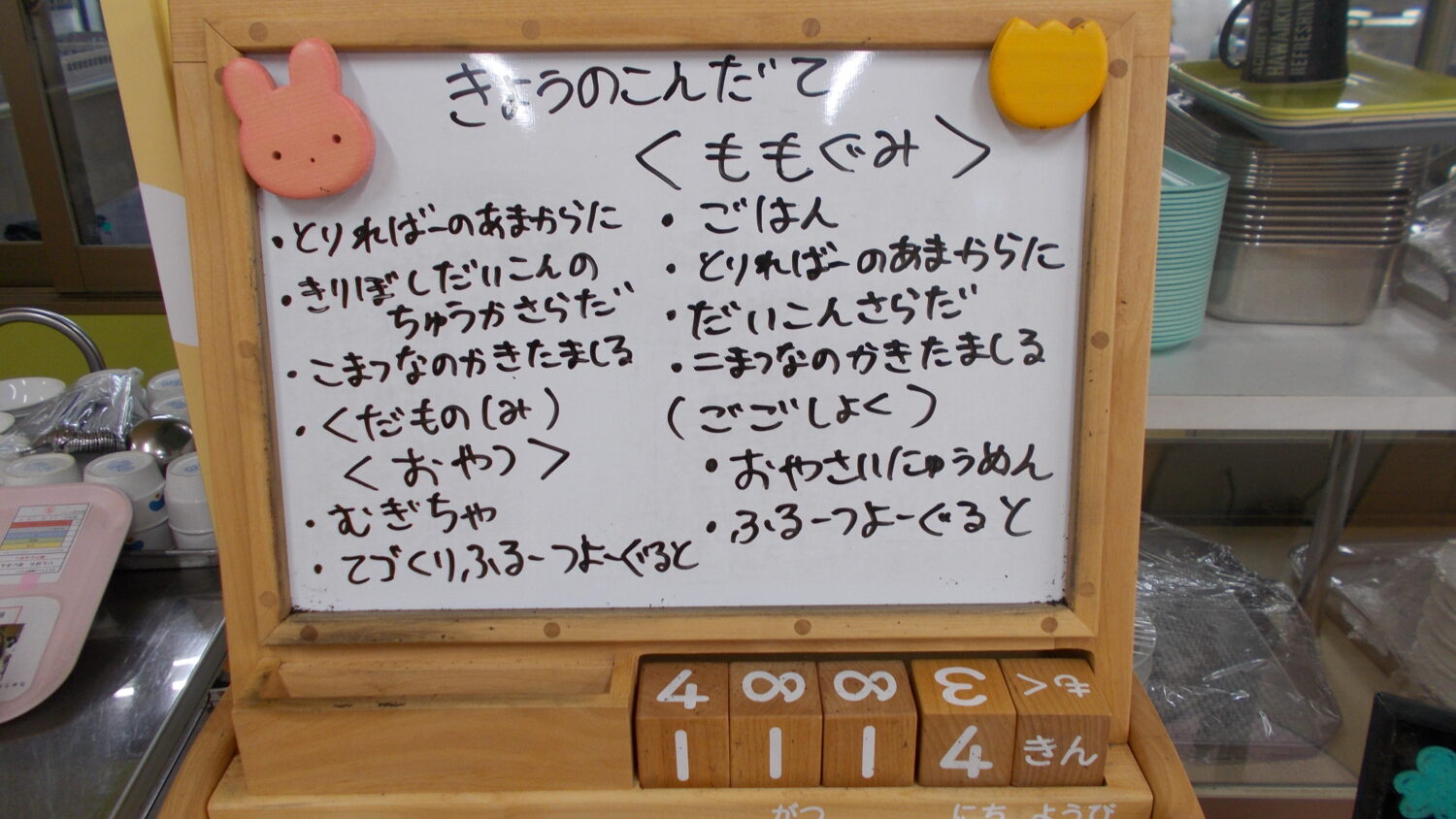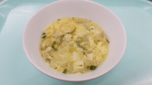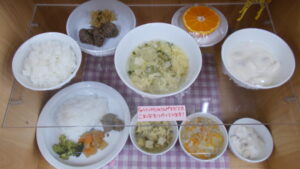 今日の小松菜のかき玉汁の小松菜は、ちゅうりっぷ組さんが育てて収穫した小松菜を使用しています。9月に種をまき子どもたちが一生懸命水やりをしてくれた小松菜は、葉の全体が青々として張りがあり立派に成長していました。自分たちで育てた小松菜は特別でお野菜が苦手な子もたくさん食べていました。