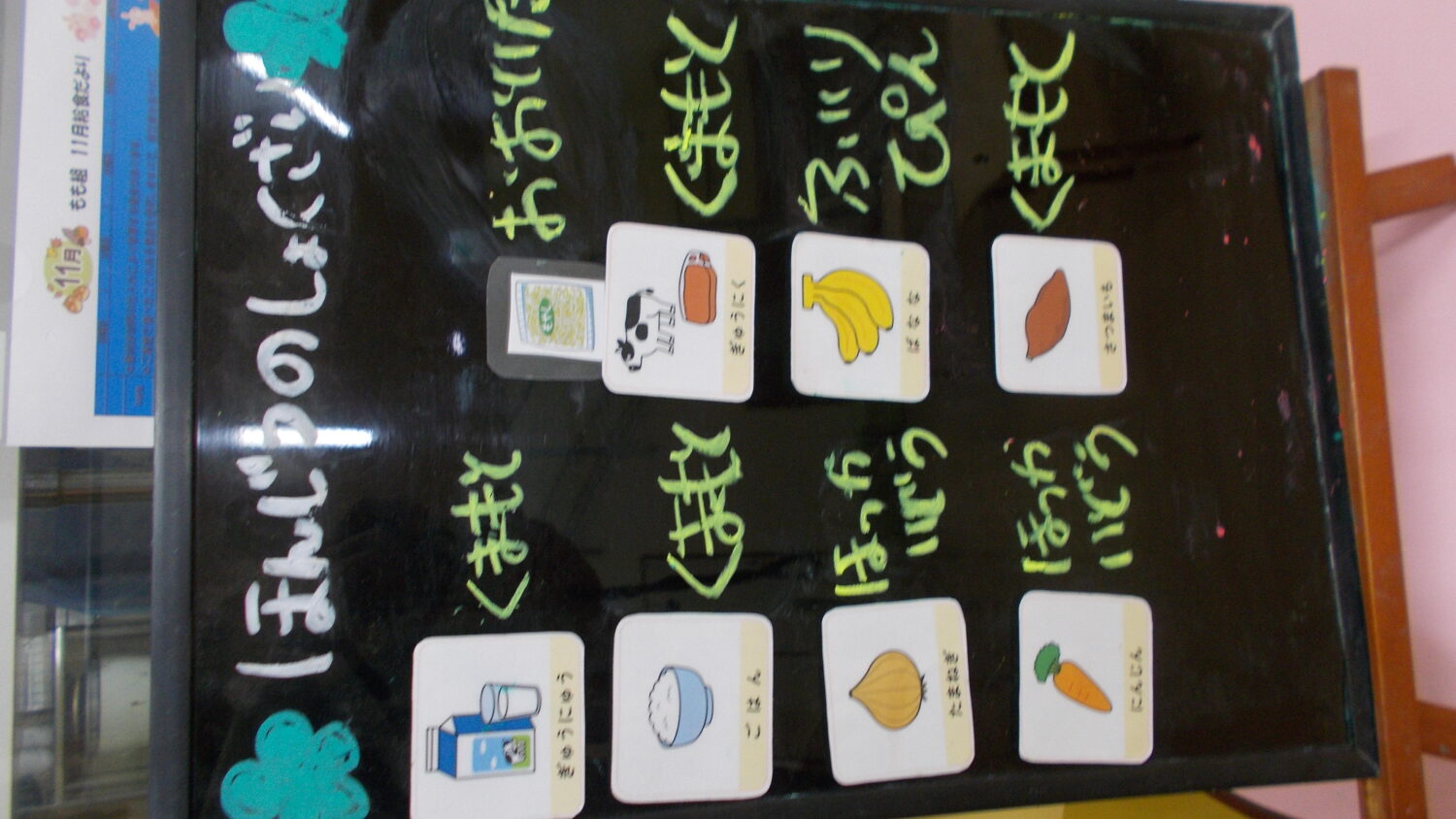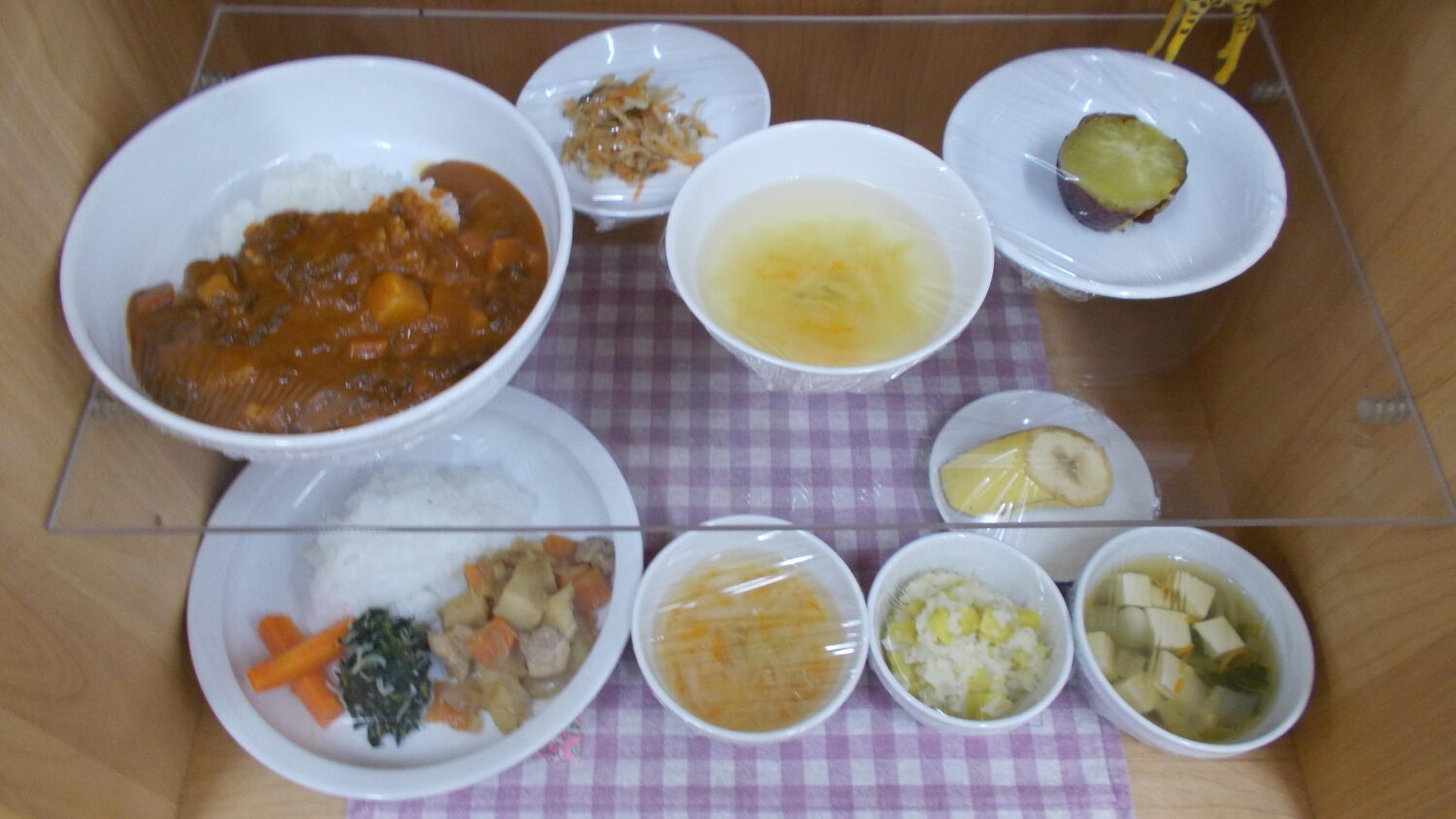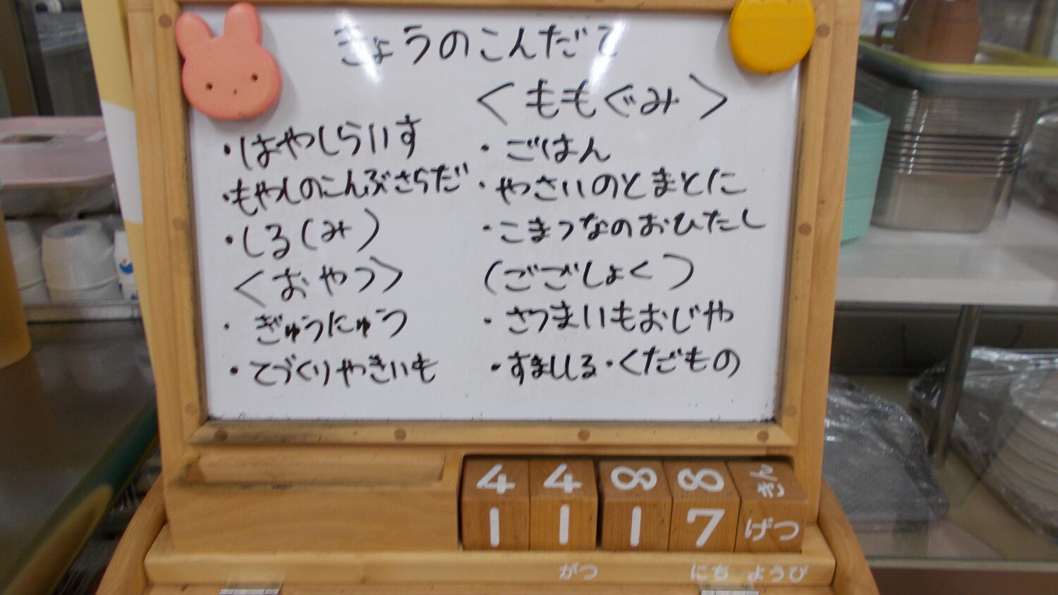 献立に変更があります。もも組の午後食がさつま芋おじや、すまし汁に変わっています。