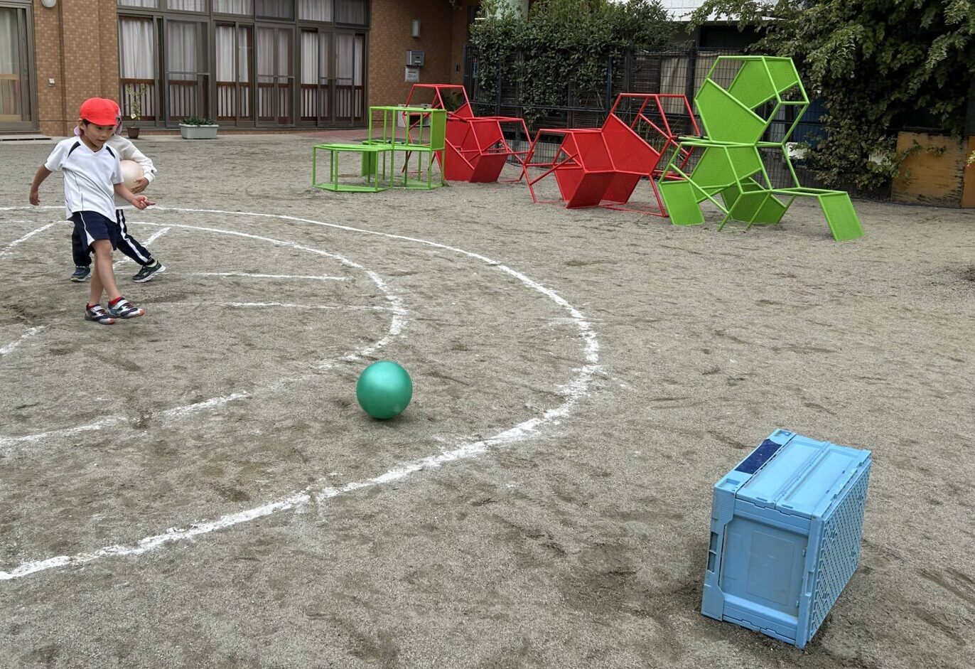 ゴールポストに見立てて、サッカー⚽️開始 (*^ω^*)