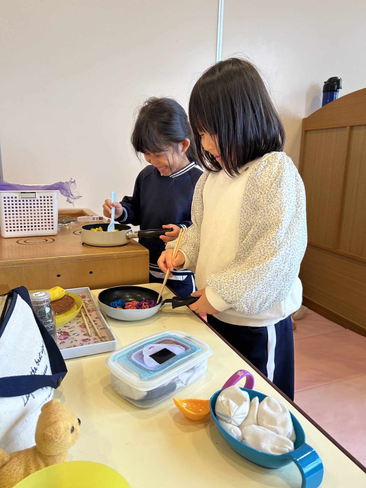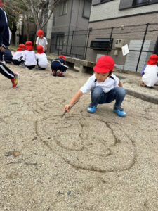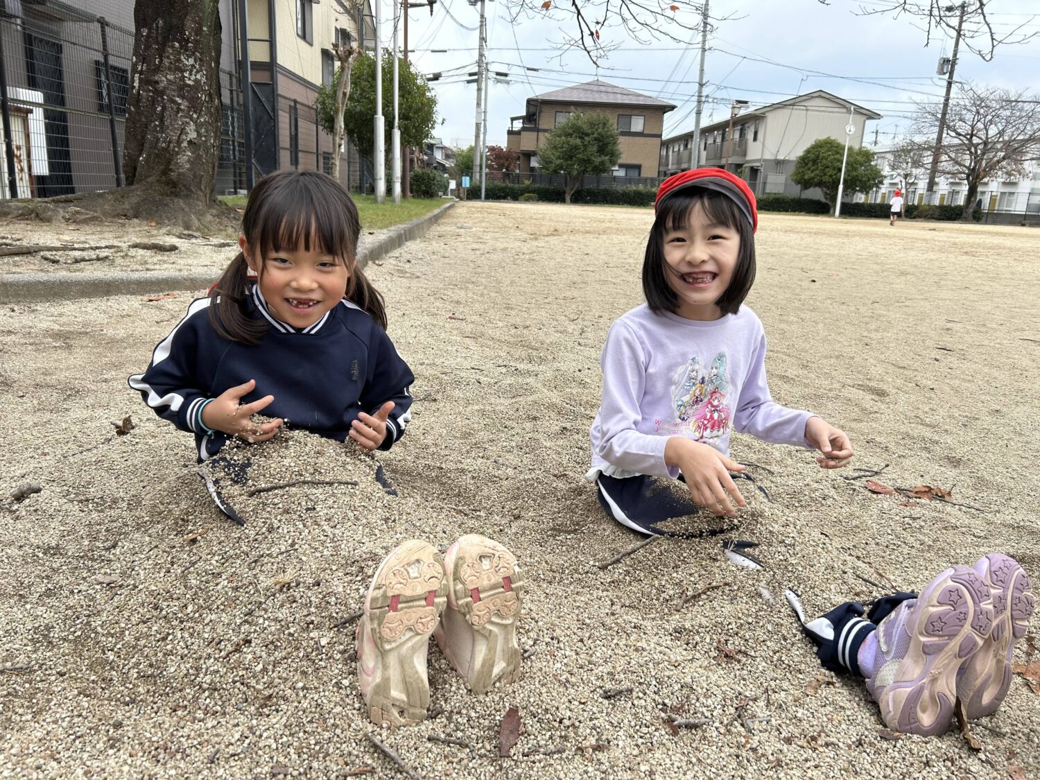 落ち葉を使ってウサギさんを作ったり、工夫して遊ぶ姿が見られました😉