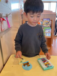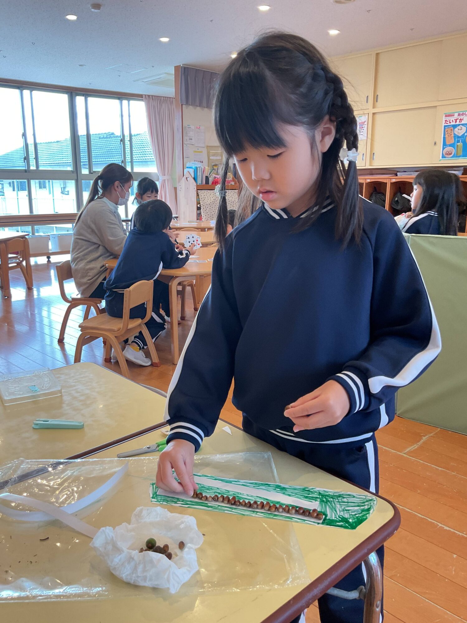 お部屋では、集めたどんぐりや落ち葉を使って制作を楽しみました。