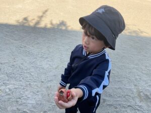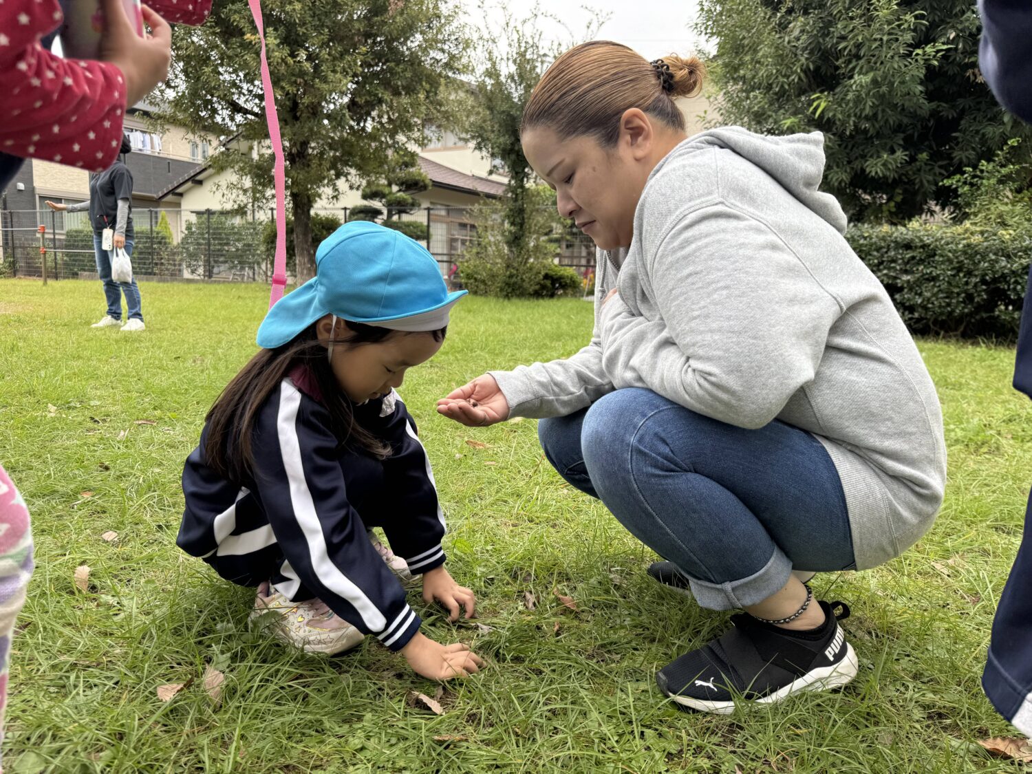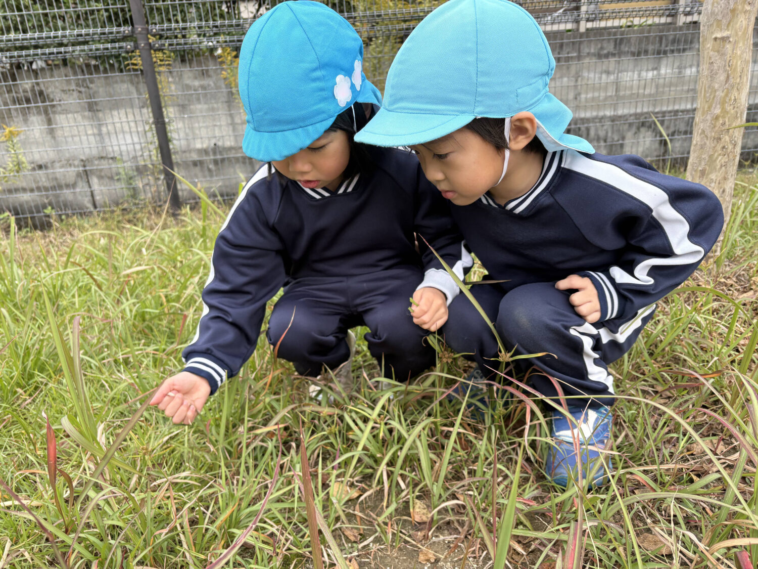 寒くなり見つけにくい中でも諦めずに探し続け、見事にバッタを捕まえて大喜びでした🦗笑