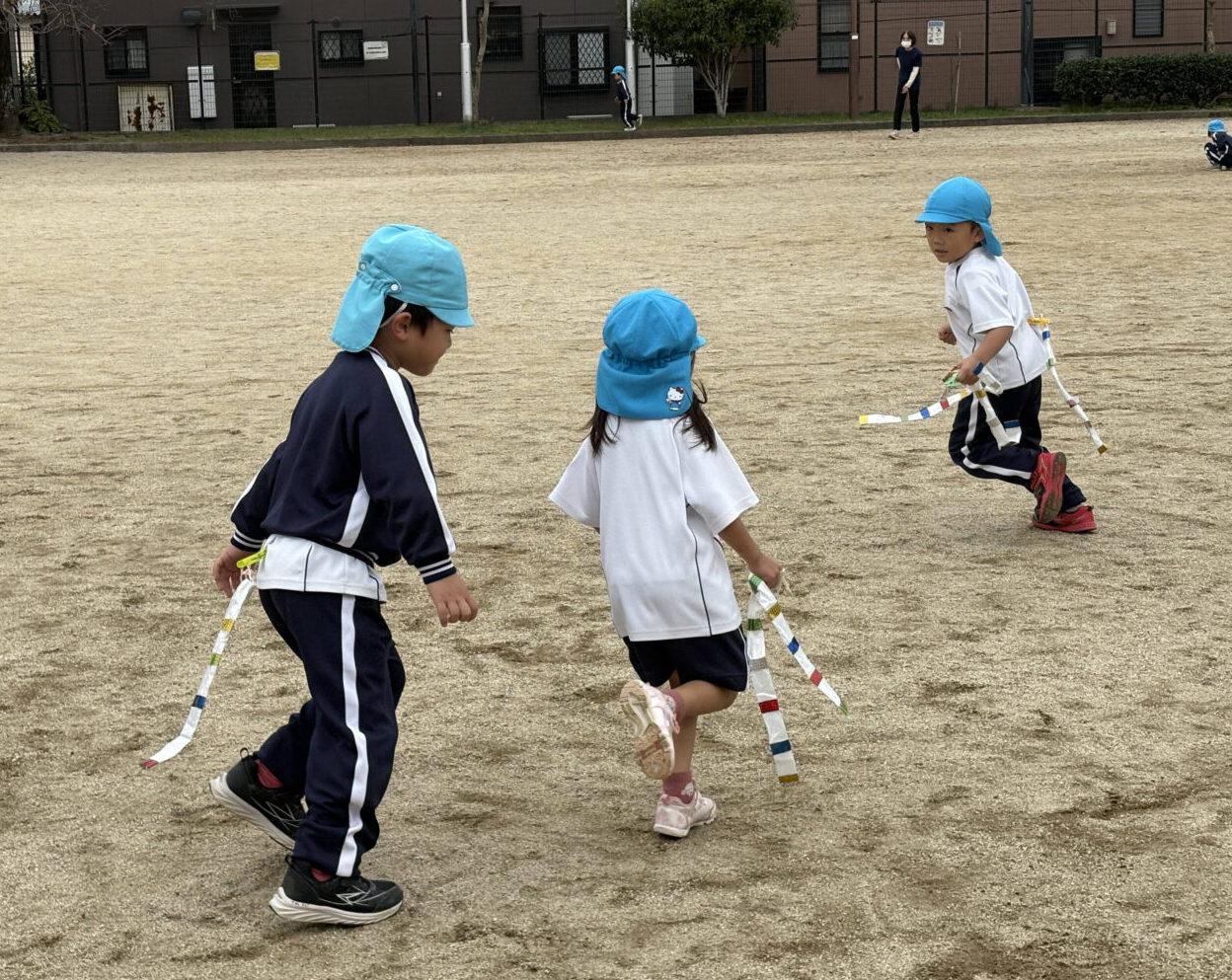 しっぽを取られまいと必死に逃げたり、お友だちのしっぽを狙って追いかけたり、とっても盛り上がりました!